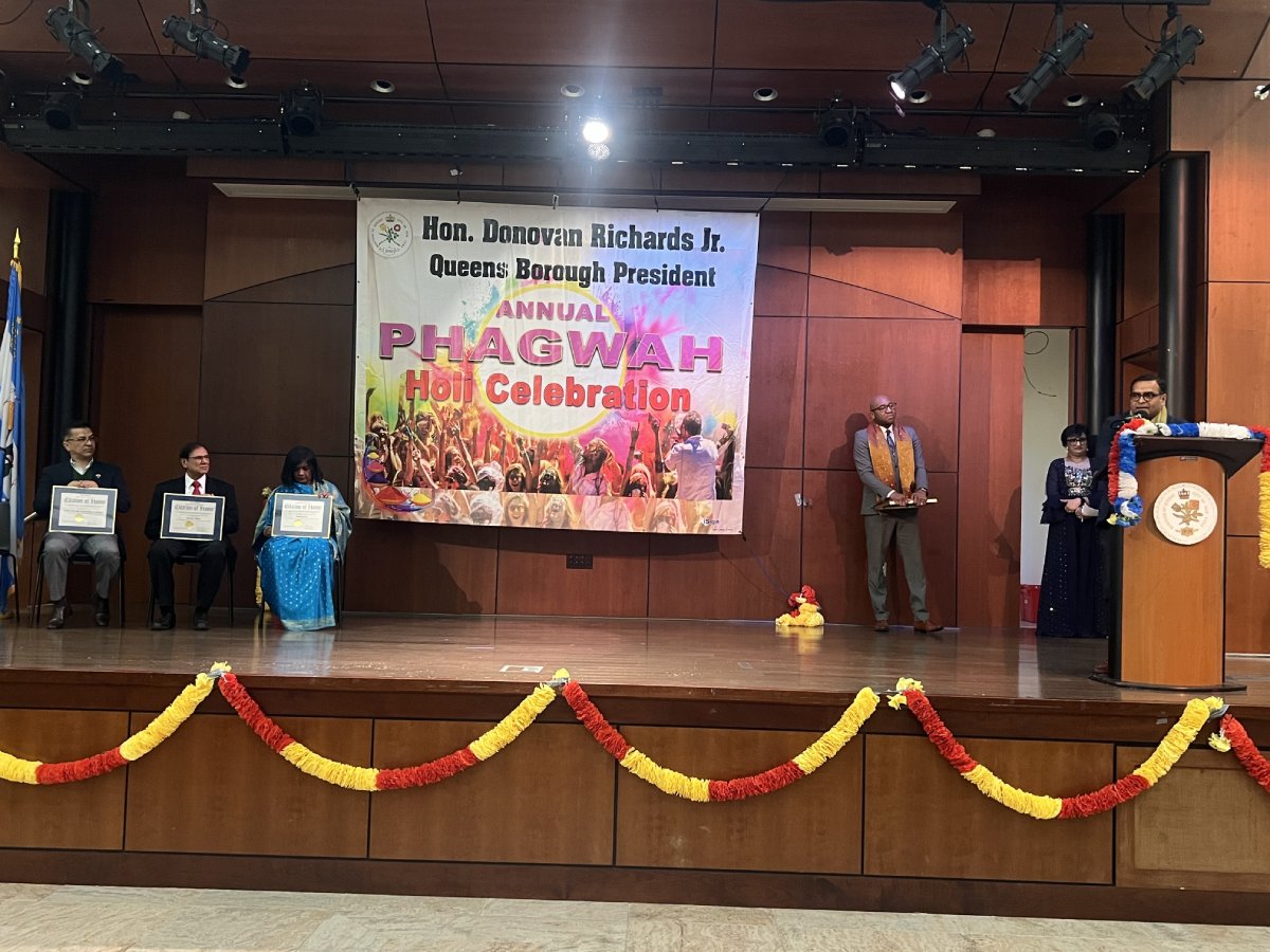 Every Queens Boro President and NYC Mayors going back a few decades hosted Phagwah celebrations. The Queens Borough event was open to the public free of charge. It was a program of free cultural entertainment (dancers, singing, music), short speeches, ethnic dishes, and award ceremony. The participants were of Indo Caribbean, Asian Indian, Bangladeshi and Nepali background. Awardees include a Jndo Caribbean, Bangladeshi. Nepali. and a national from India. There was a full house of spectators including several Caribbean community leaders.