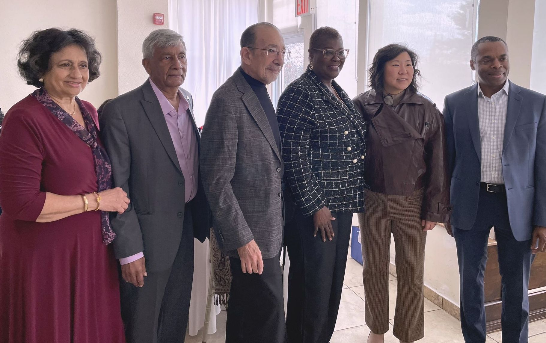 l-r Camille Ramsaran, Ashook Ramsaran, Warren Schreiber (Queens Civic Congress), NYS Sen. Roxanne Persaud, US Cong. Grace Meng, Michael Scotland (1)